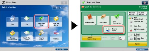[Send to Myself] appears only if you register a user's e-mail address when you are using authentication by SSO-H.