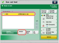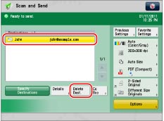 You can check, edit, or delete a specified destination before you scan your documents.