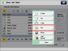 The first character that you enter for the name is used for sorting the destination list when you press keys, such as [ABC], [DEF], and [GHI], on the Address Book screen. If [Search by Name] is pressed on the Address Book screen, a screen for narrowing the search in the Address Book appears.