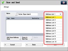 Press the drop-down list → select an address list from Address List 1 to 10.