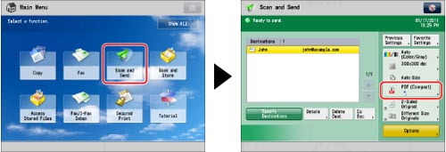 If you select PDF (OCR) or XPS (OCR) as the file format, and <Smart Scan> is set to 'On' in [OCR (Text Searchable)], the orientation of the original is detected, and the document is automatically rotated if necessary before it is sent. (See "Settings for Creating Searchable PDF/XPS.")