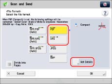 If you select PDF (OCR) or XPS (OCR) as the file format, you can only send at a zoom ratio of [Direct (100%)] or [Auto].