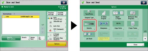 Specify the destination → press [Options] → [Density].