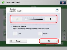 You can adjust the density to the most appropriate level for color of the original when scanning. You can also adjust the background density for originals such as colored paper.