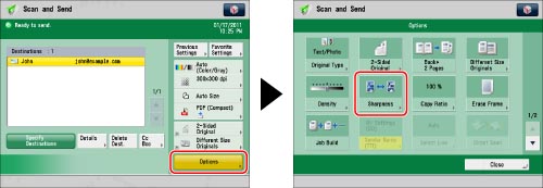 The setting for [Sharpness] is invalid when all of the conditions below are met. The setting is reflected in the image displayed for [Preview], but not for the actual scanned image.