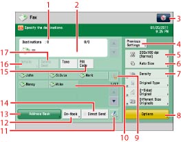 Press to send documents directly to the recipient. If you do not select Direct Sending, Memory Sending is used instead. (See "Switching to Direct Sending.")