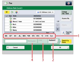 If you press [Search by Name], a pop-up screen for refining the address book appears.