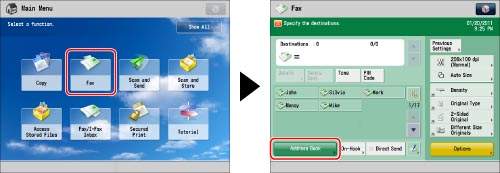 Press [Fax] → [Address Book].