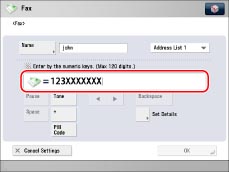 Enter a name for the fax number (recipient) → press [OK].