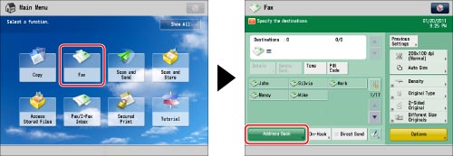 For instructions on searching for destinations registered in the Address Book, see