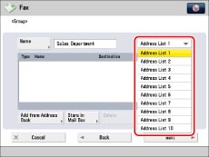 Press the drop-down list → select an address list from Address List 1 to 10.