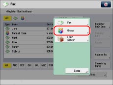 If you want to store a group address, you can only select destinations registered in the same Address List.