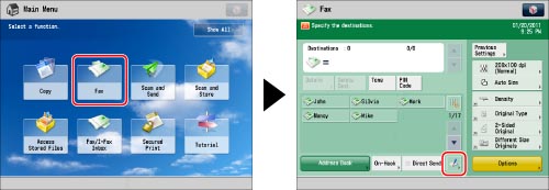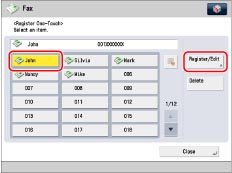 Destinations stored in one-touch buttons also appear in the Local Address Book.