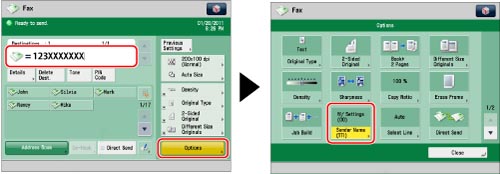 Specify the destination → press [Options] → [Sender Name (TTI)].
