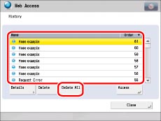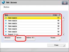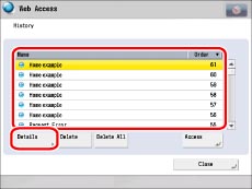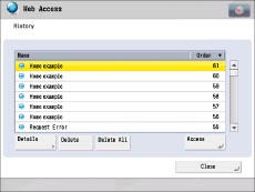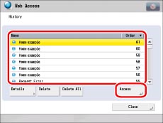 Select [Name] or [Order] to sort the URL history list in ascending or descending order.