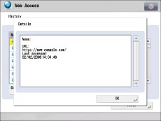 If you set [Dept. ID/User Name with History] to 'On' in Settings, the Department ID or user name is also displayed. (See "Privacy Policy and Regulations Settings.")