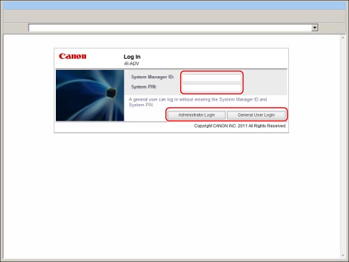 If Default Authentication and Department ID Management are set, enter the Department ID and password to log in.