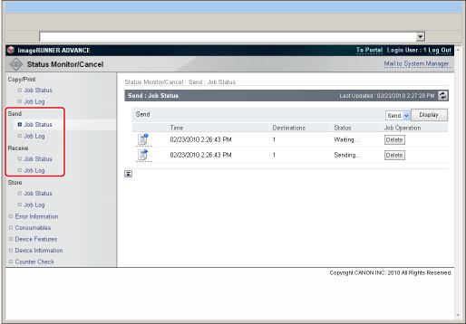 You can check the details of forwarded jobs from the forwarding status screen. For more information on forwarding jobs, see "Sending/Receiving a Fax."