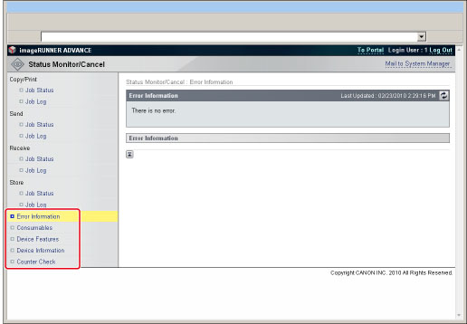 Displays information related to the machine, such as information regarding the administrator and the location where the machine is installed.