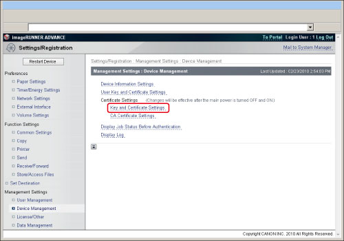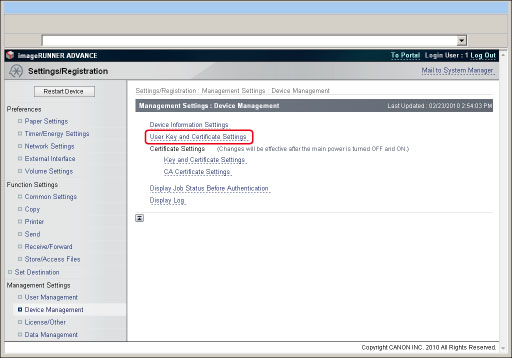 Click [User Key and Certificate Settings].