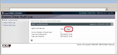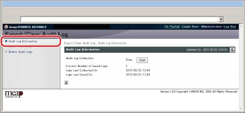 In order to manage logs, it is necessary to log in to the Remote UI as an administrator.