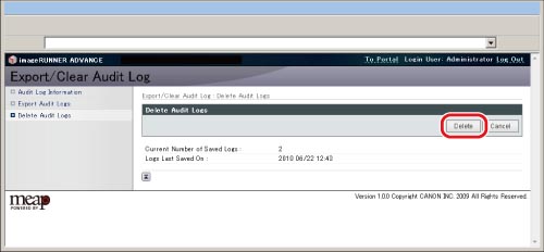 Please note that Canon will not be held responsible for any damages caused by the use of Audit Log Management or the inability to use Audit Log Management.