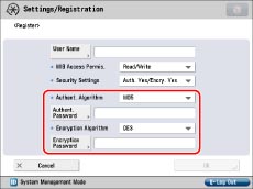 Select [DES] or [AES] from the <Encryption Algorithm> drop-down list → set [Encryption Password].