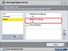 Press [Preferences] → [Network] → [IEEE802.1X Settings].
