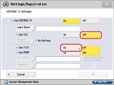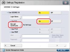 Press [Off] if you do not want to use IEEE802.1X authentication.