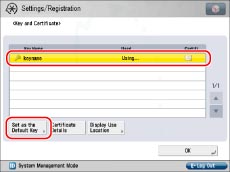 You can check what a key pair is being used for by selecting a key pair with 'Used' displayed for <Status> on the Key and Certificate screen, and pressing [Display Use Location].