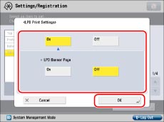 Press [On] to use LPD as the print application.