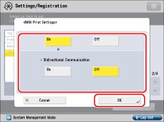 Press [On] to use the Remote UI, IPP printing, WSD printing, and Department ID Management PIN confirmation.
