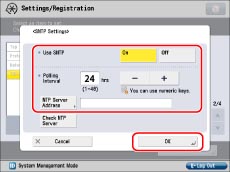 Press [SNTP Settings] for [TCP/IP Settings] → specify the following items → press [OK].