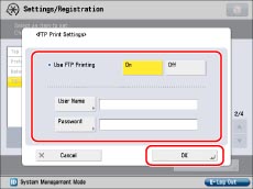 Press [FTP Print Settings] for [TCP/IP Settings] → specify the following items → press [OK].