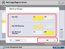 If you want to use the WSD (Web Services on Devices) print application, press [On] for <Use WSD>.