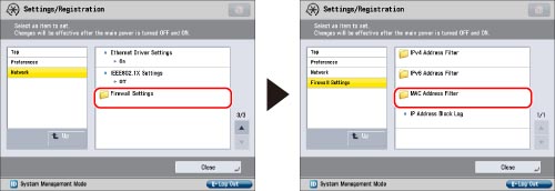 Press [Firewall Settings] for [Network] → [MAC Address Filter].