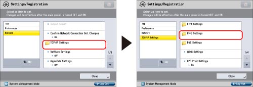 Press [TCP/IP Settings] → [IPv6 Settings].
