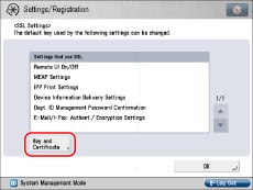 Press [SSL Settings] for [TCP/IP Settings] → [Key and Certificate].