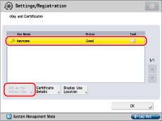 Select the key pair you want to use for SSL encrypted communications → press [Set as the Default Key].
