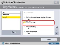 Press [Preferences] → [Network] → [TCP/IP Settings].