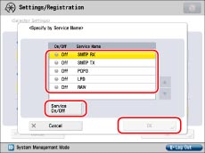 Select a displayed service name → press [Service On/Off] → press [OK].
