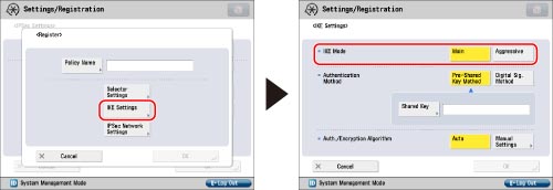 Press [IKE Settings] → select the mode to use for IKE phase 1.