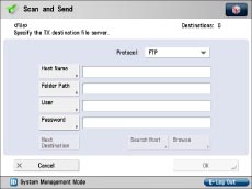 To use the host name of the above example for [Host Name], it is necessary to use a DNS server. (This applies even if the machine and the FTP server are in the same subnet.) If no DNS server is available, the setting for [Host Name] should be specified using the IP address of the FTP server.