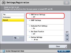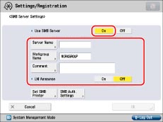 Press [Off] for <Use SMB Server> if you do not want to use the SMB server.