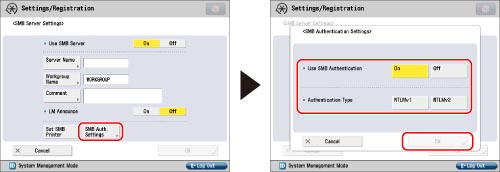 Press [SMB Auth. Settings] → specify the SMB authentication settings → press [OK].