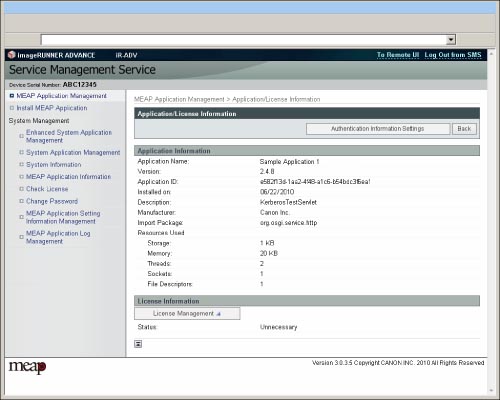 Depending on the application you are using, [Set Authentication] is displayed. For information on setting authentication information, see "Setting Application Authentication Information."