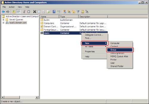 Start the Active Directory management tool, "Active Directory Users and Computers."