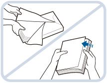Before loading paper, always fan the sheets several times, and align the edges to facilitate feeding.