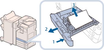 1. Make sure that the paper size setting of the paper drawer matches the size of the paper to load in the paper drawer.