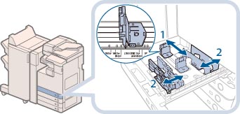 Slide the guides until they click into place. If the left guide and front guide are not aligned correctly, the paper size will not correctly appear on the touch panel display. It is also necessary to adjust the guides correctly to avoid causing a paper jam, dirty prints, or making the inside of the machine dirty.